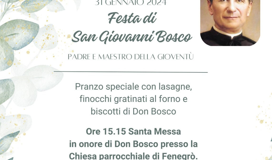 Ore 15.15 Santa Messa in onore di Don Bosco presso la Chiesa parrocchiale di Fenegrò.